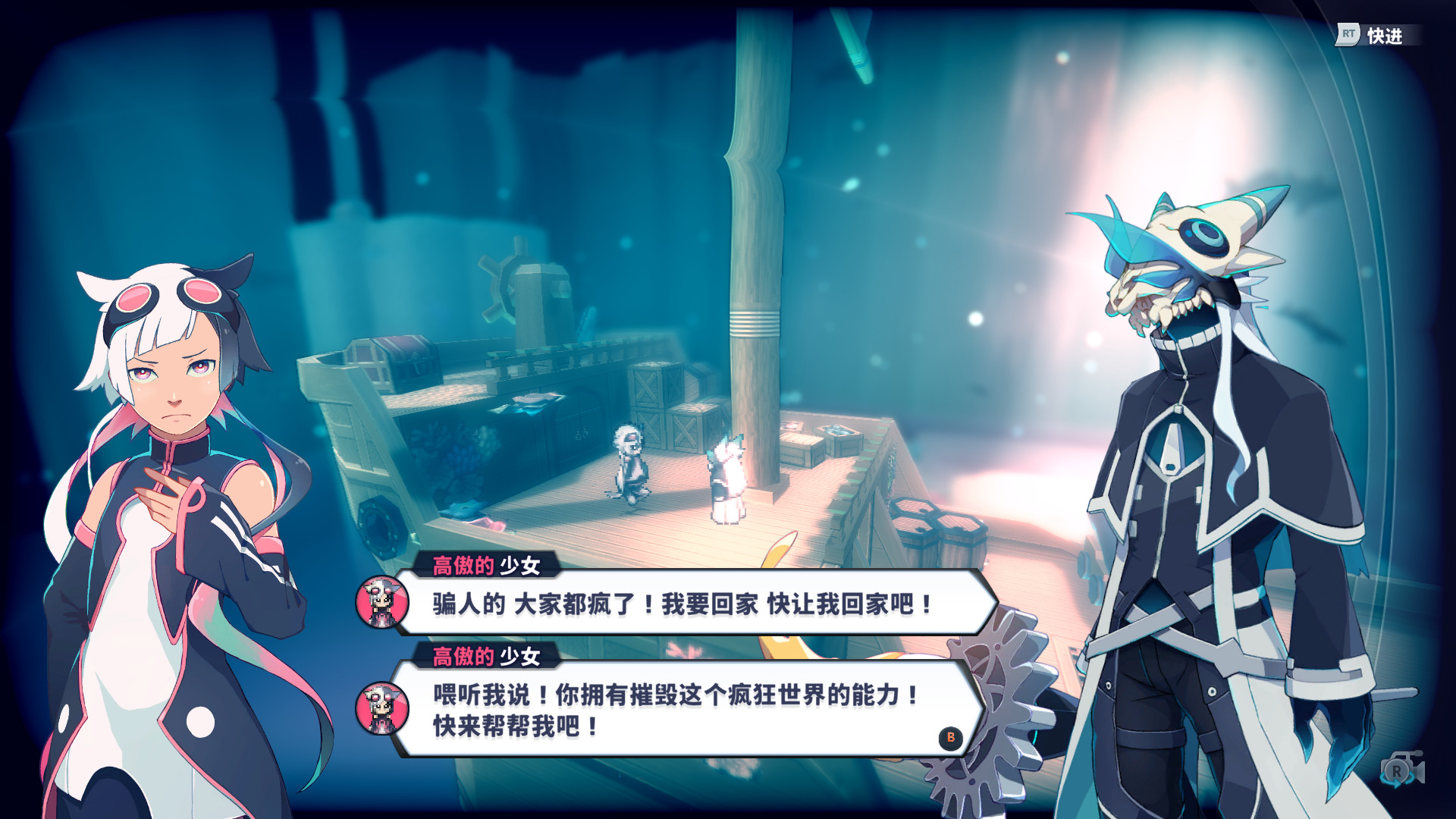 这是一款由一人独立开发的PRG,游戏中充满了像素风角色和3D场景,live2D动画。主人公(Hero)不小心进入了一个“谁都可以幸福的(坏掉的)世界”,他一路上收集路人的各种“愿望”,一边寻找世界的真相。最后,世界可以被修复吗?还是会……?