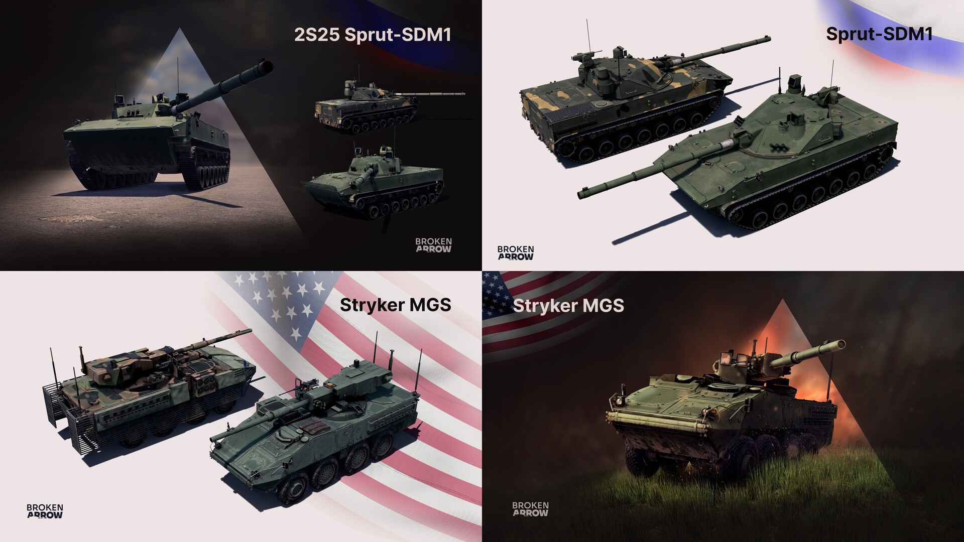 《断箭》(Broken Arrow)是一款大型实时现代战争战术游戏. 基础版游戏将包含美国和俄罗斯两个阵营, 每个阵营拥有4个独特的军种, 如海军陆战队, 装甲部队, 空降兵等.
