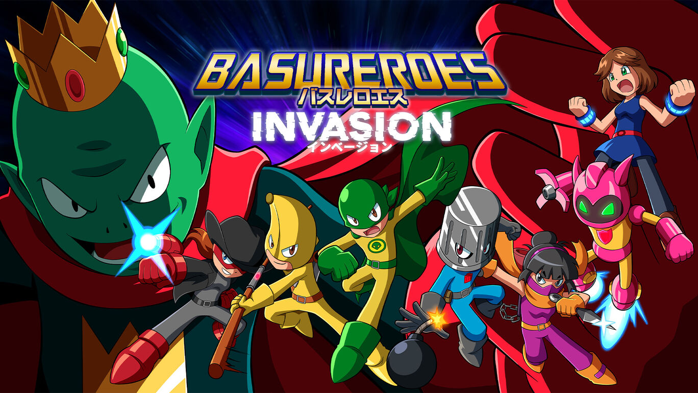 | バスレロエス インベージョン(Basureroes: Invasion)は、ヒーローたちが活躍するアクションゲームです。クラシックなアクションプラットホームに敬意を表したレトロなビジュアルで、個性豊かなスキルを持つヒーローたちが活躍します。 ボスに勝利しステージをクリアするだけでなく、各ステージ上には5人の人物と1匹の犬が救出を待っています。ヒーローらしく活躍しましょう。 最大4人のプレーヤーで協力プレイが可能です。 【あらすじ】 10年前、凶悪なディオジェネス博士とロボットがニュージェネシアの街を大混乱に陥れた。そんな時、悪党を倒すためにヒーローが集結した『バスレロエス』と呼ばれるヒーローだ。 彼らは、正義を守るために、様々な敵と戦い、いつも勝利を収めてきた。 時が経ち、バスレロエスに様々な変化が訪れた。戦いを通して、沢山の友人や敵と出会った。そして、ディオジェネス博士が復讐のために戻ってきた。より強く、更に危険になって… バスレロエスは再び戦わないとならない。しかし、もっと悪い敵が陰に隠れていることは、知る由もなかった。 ディオジェネス博士を倒したと思ったら、そいつはやって来た。どこからともなく、敵対的な宇宙人『ヴルスラ星人』が、ヴラール王に率いられ、地球を支配するためにやってきたのだ。不意を突かれたヒーローたちは捕まってしまい、エイリアンの計画をとめる者がいなくなり、やりたい放題となった。それが侵略の始まりだった。しかし、捕らえられたヒーローが脱出し、地球を救うために立ち上がった… |